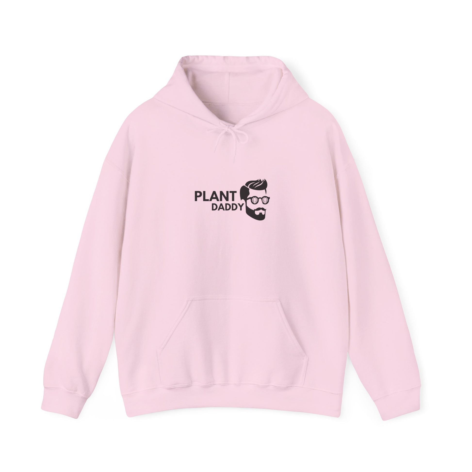 Across the front, this hoodie sports the phrase 'plant daddy,' paired with a quirky sketch of a bearded fellow sporting Monstera leaf glasses. It's a fun, comfy way to wear your title of top plant caretaker.