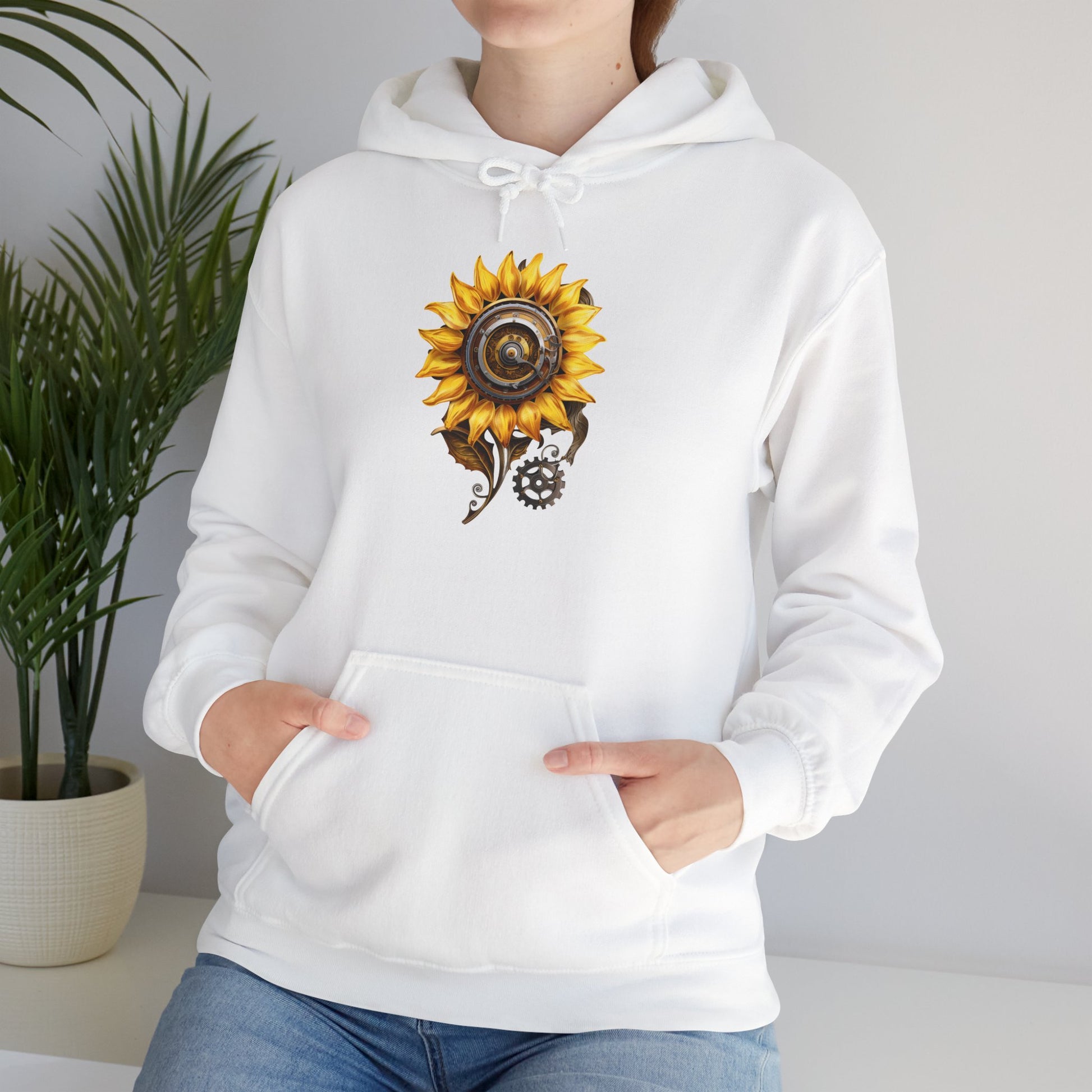 🌻 Cozy Up with Tech & Flora: The "Mechanical Sunflower" Hoodie Experience ⚙️
