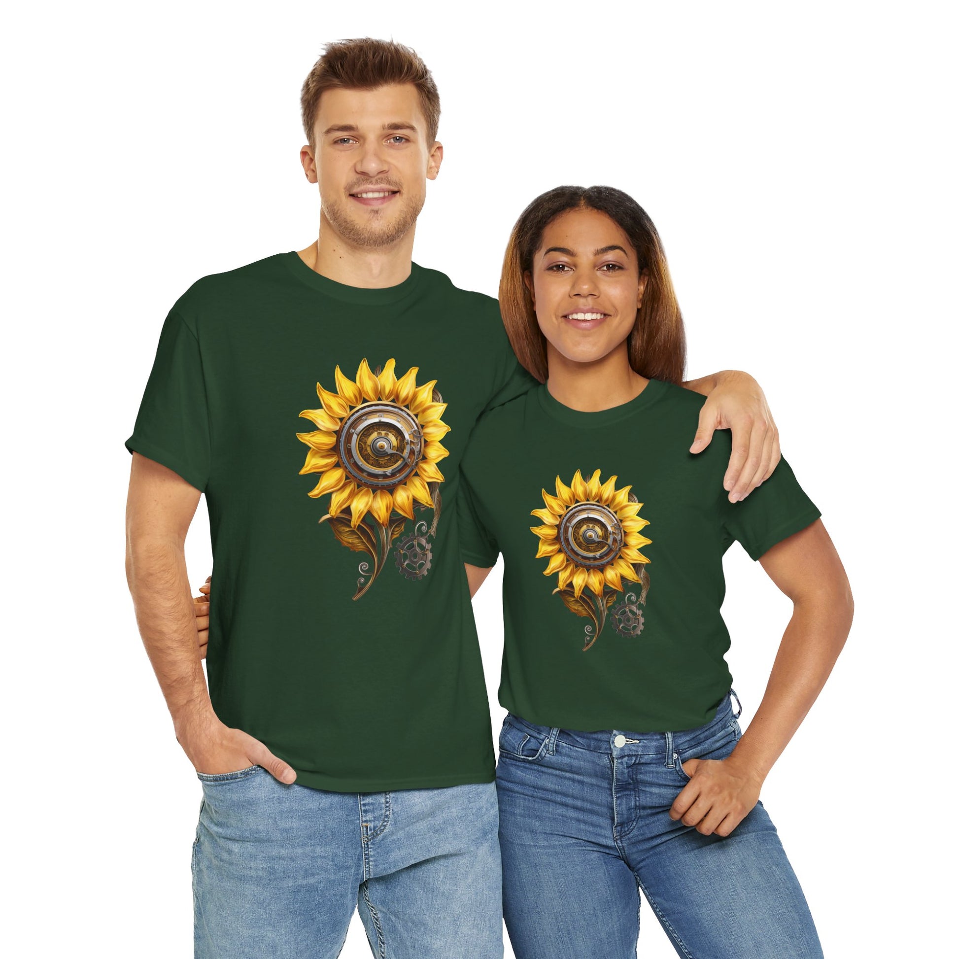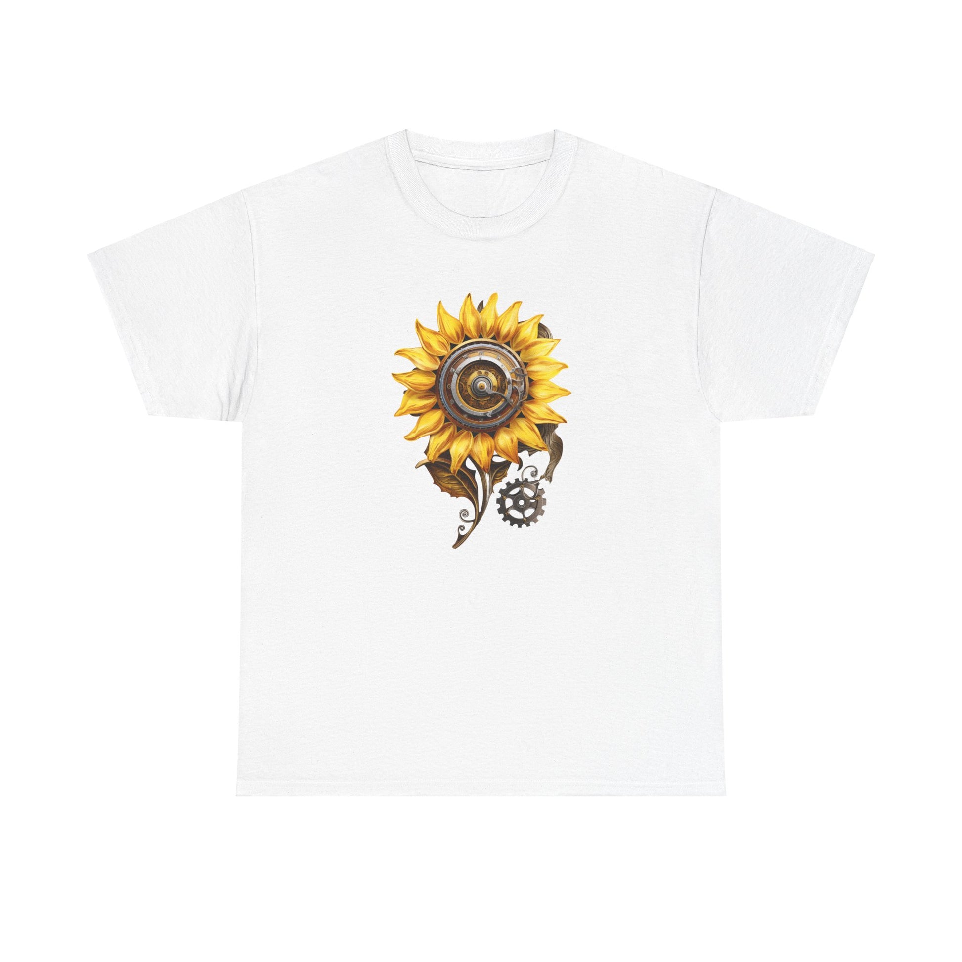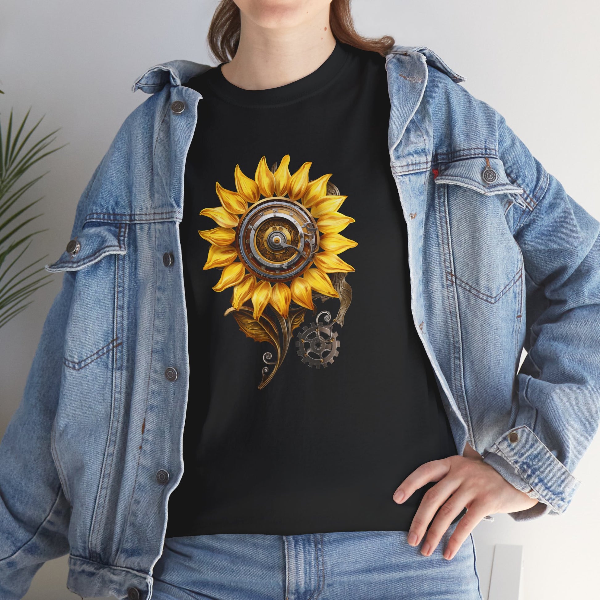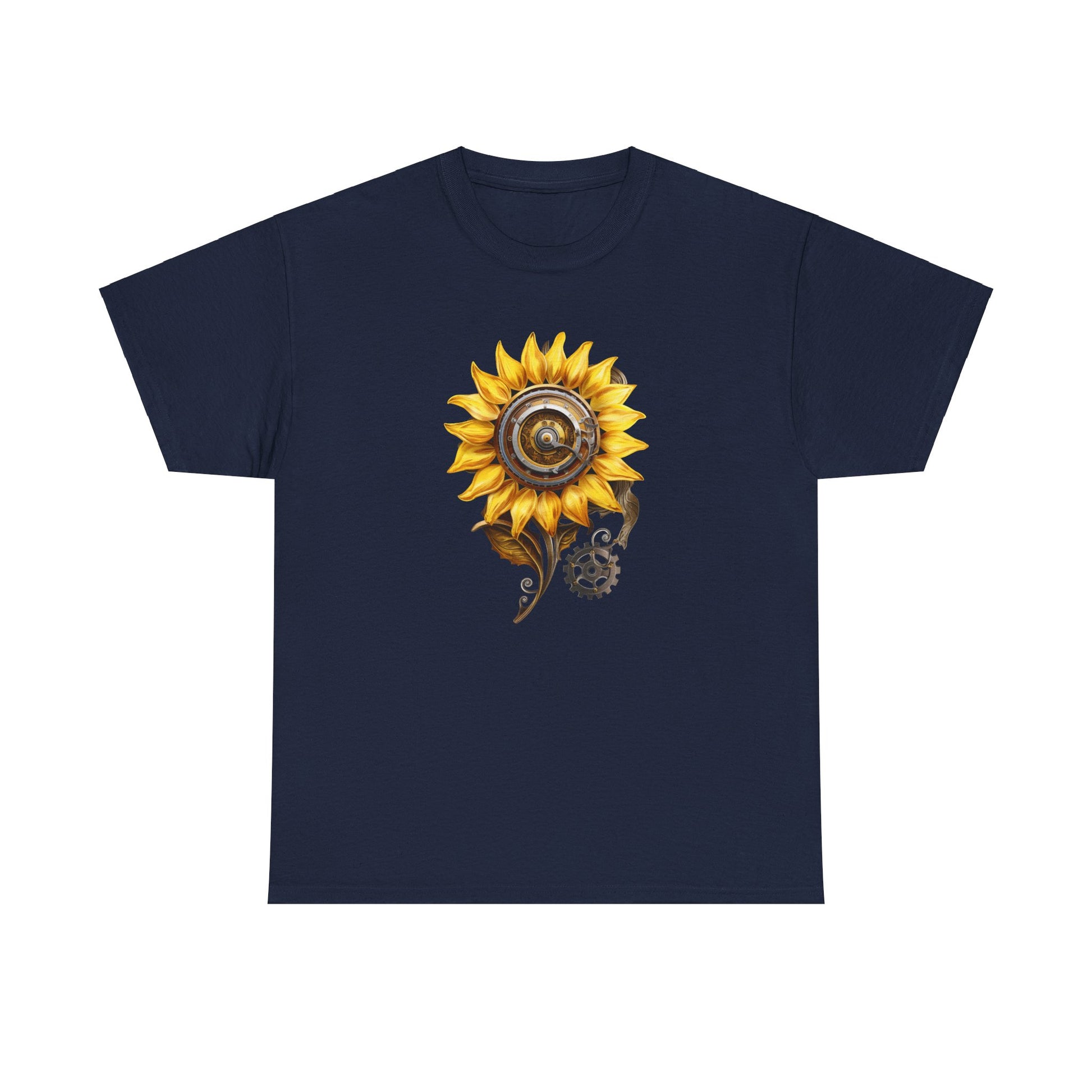 No ordinary T-Shirt, our Mechanical Sunflower design takes you to a realm where Mother Nature and human engineering dance in perfect synchrony. With each wear, showcase a golden sunflower, not just blooming, but ticking and turning with delicate gears and mechanisms. It's truly a treat for everyone who has a heart for plants and a mind for mechanics!