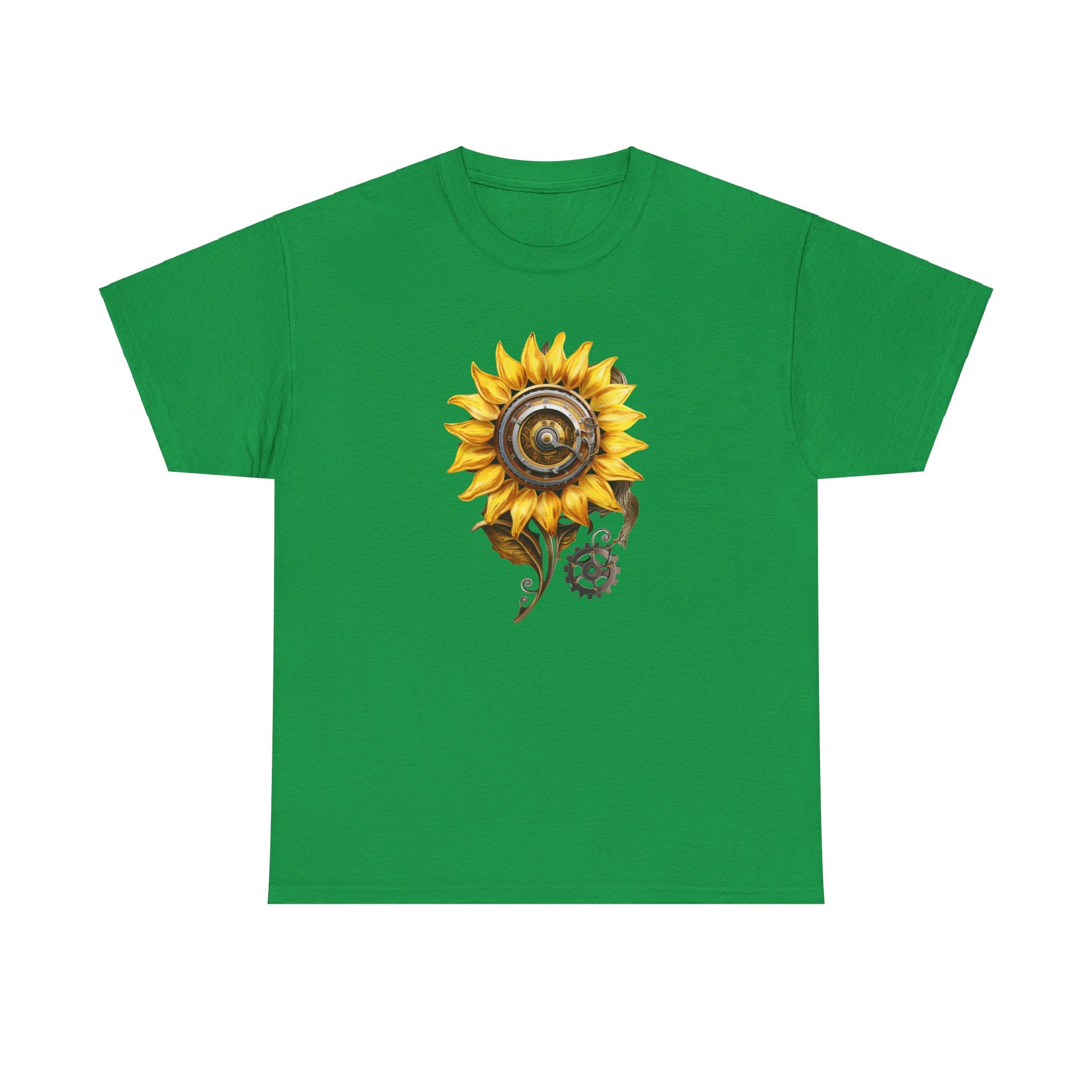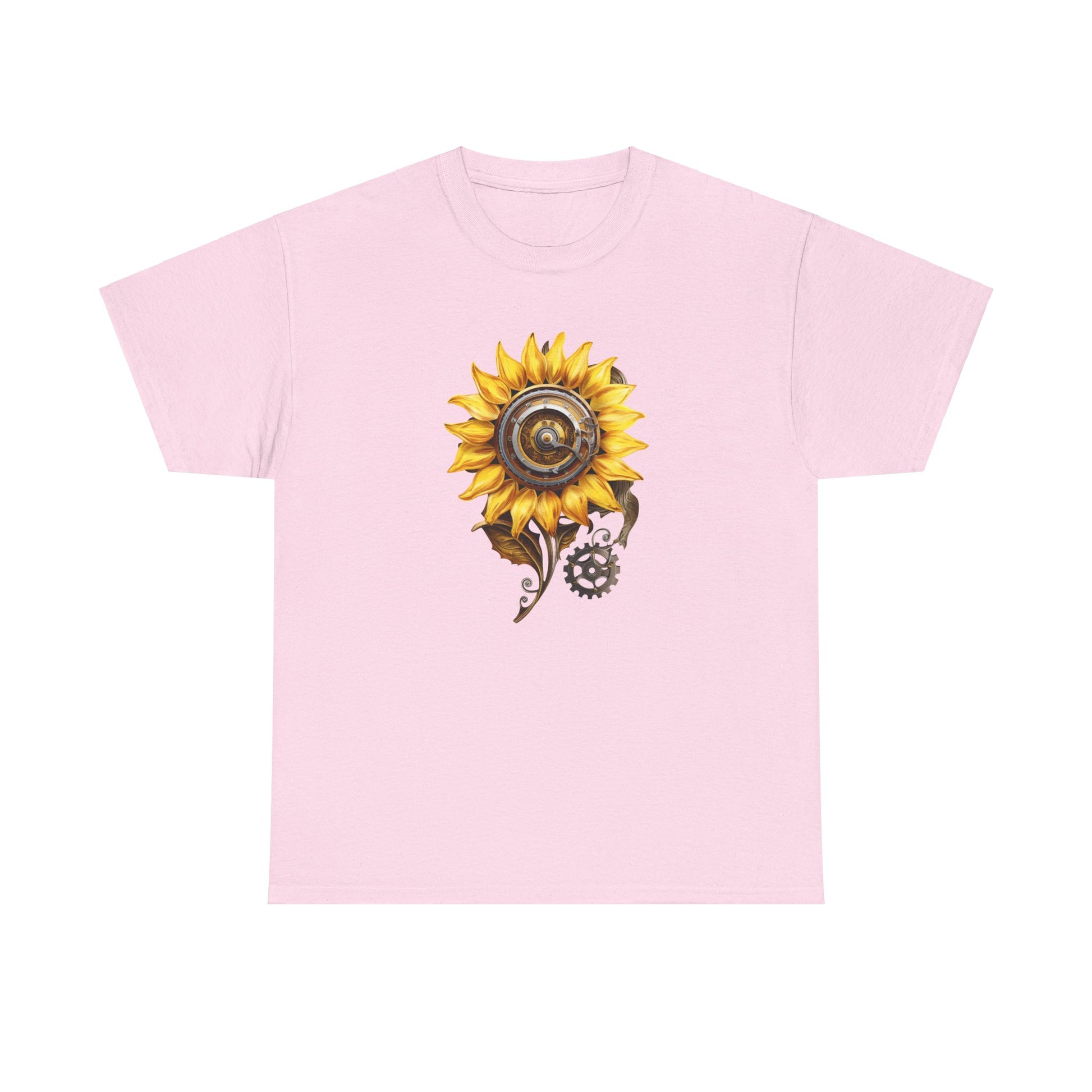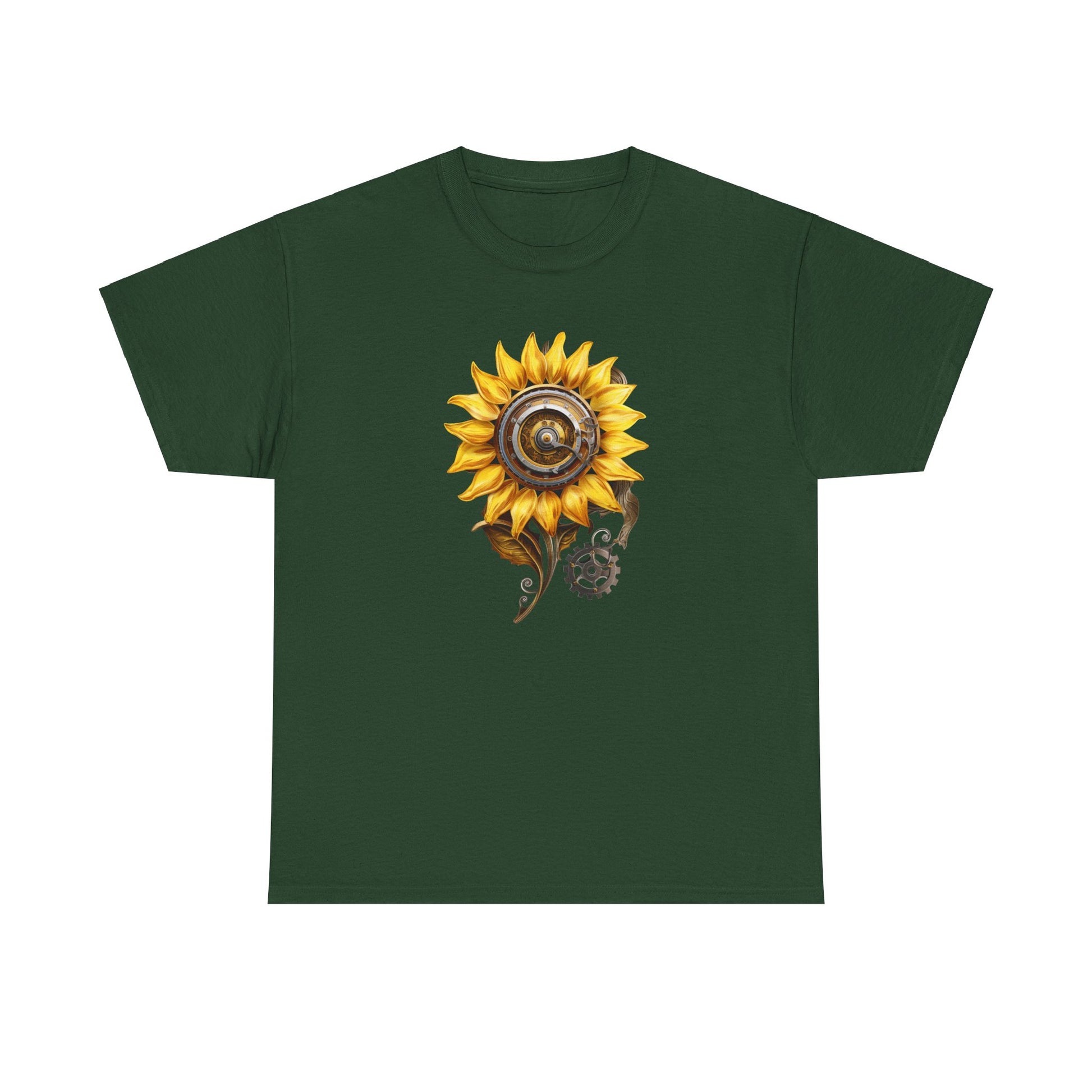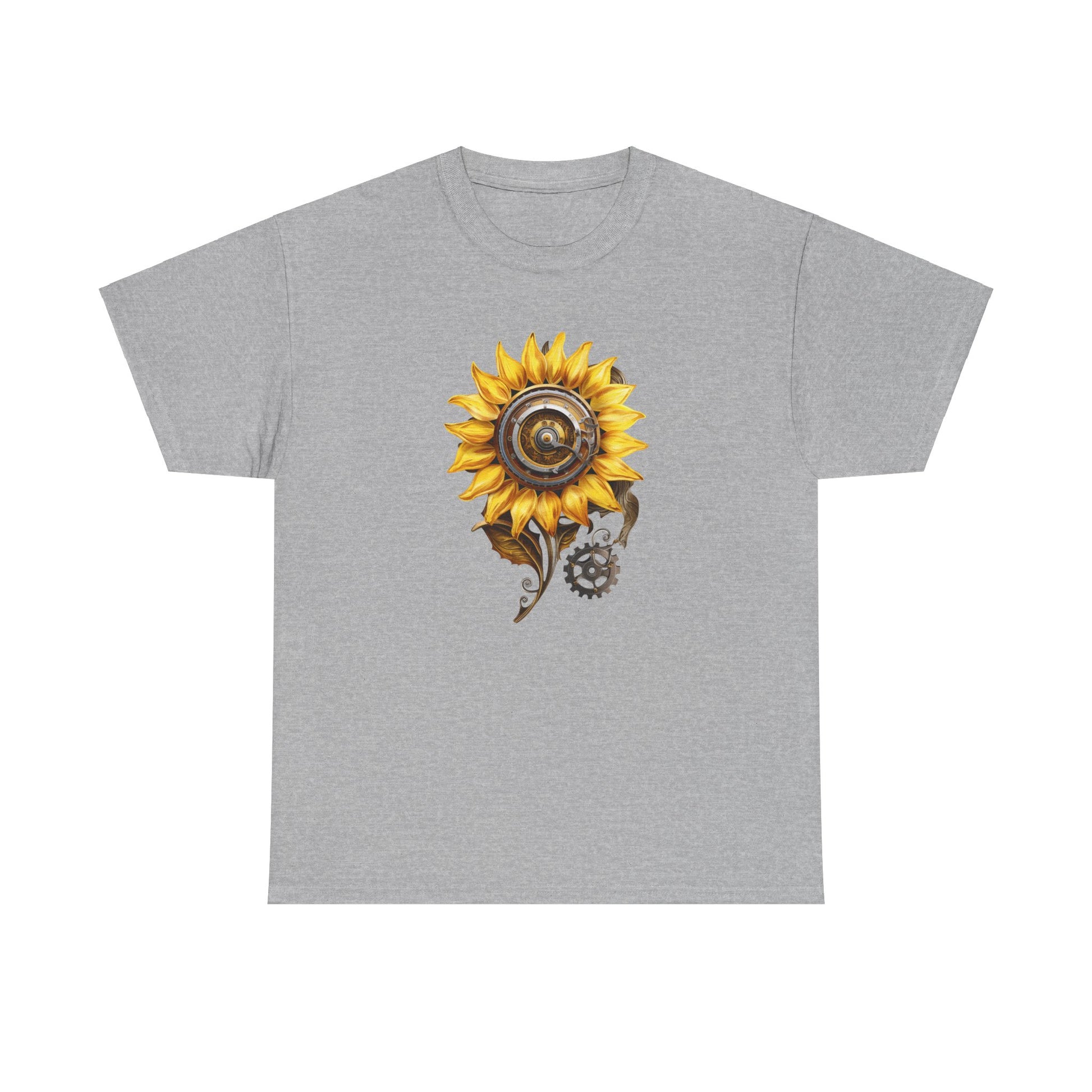 No ordinary T-Shirt, our Mechanical Sunflower design takes you to a realm where Mother Nature and human engineering dance in perfect synchrony. With each wear, showcase a golden sunflower, not just blooming, but ticking and turning with delicate gears and mechanisms. It's truly a treat for everyone who has a heart for plants and a mind for mechanics!