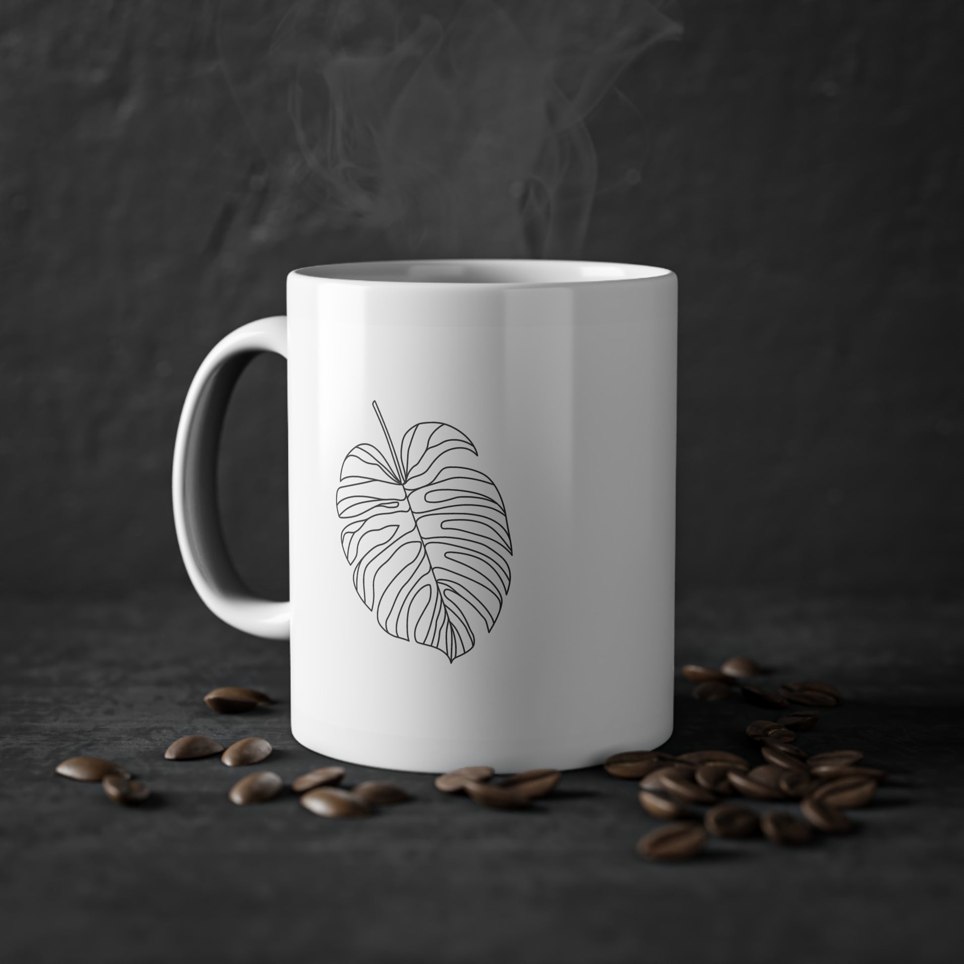 Each curve on this elegantly crafted Cup is a tribute to the Monstera's iconic beauty. The continuous line drawing captures the essence of the leaf with an artistic flair that's both subtle and striking. It's a design that's not just seen but felt with every warm sip, inviting a moment of pause to appreciate the finer things in life.