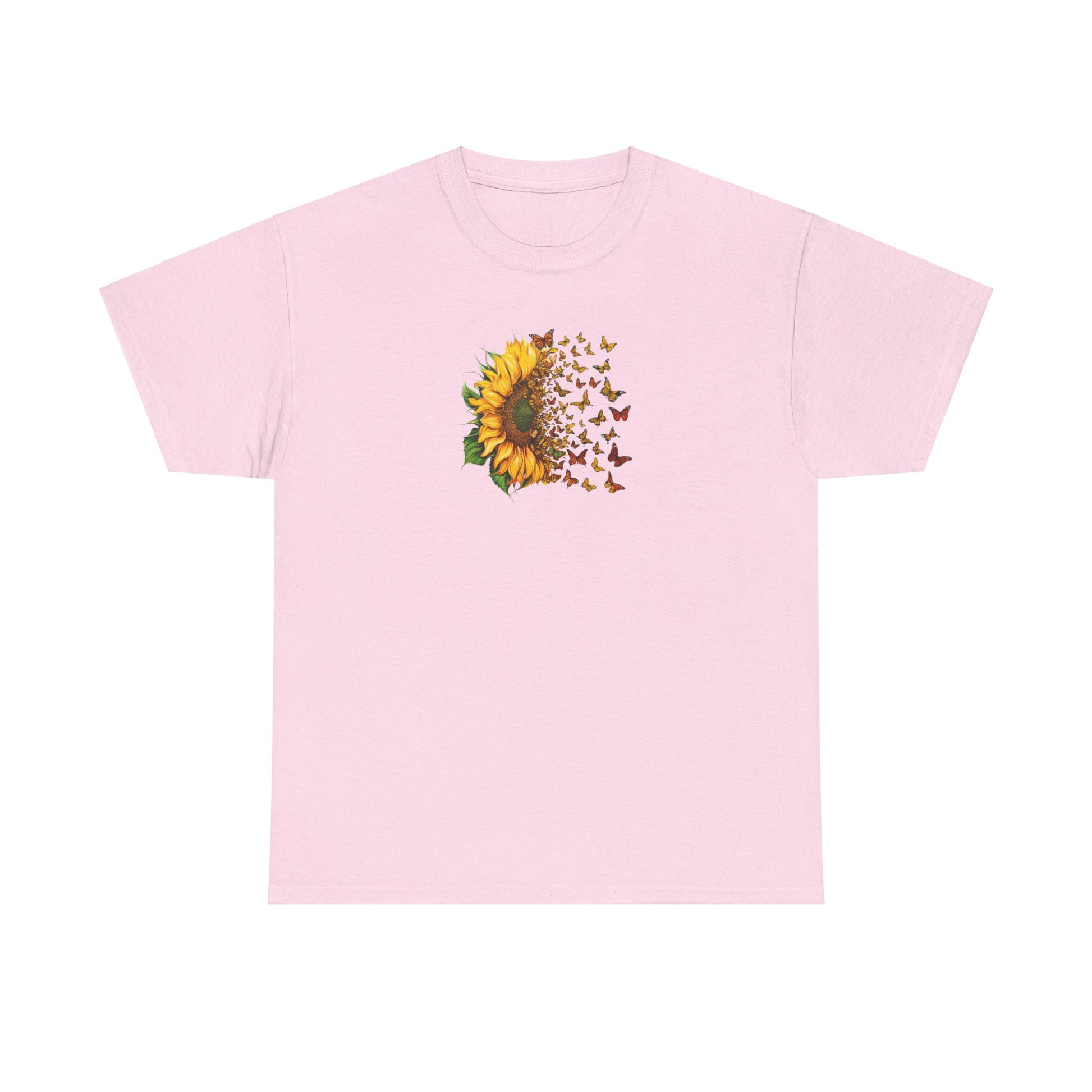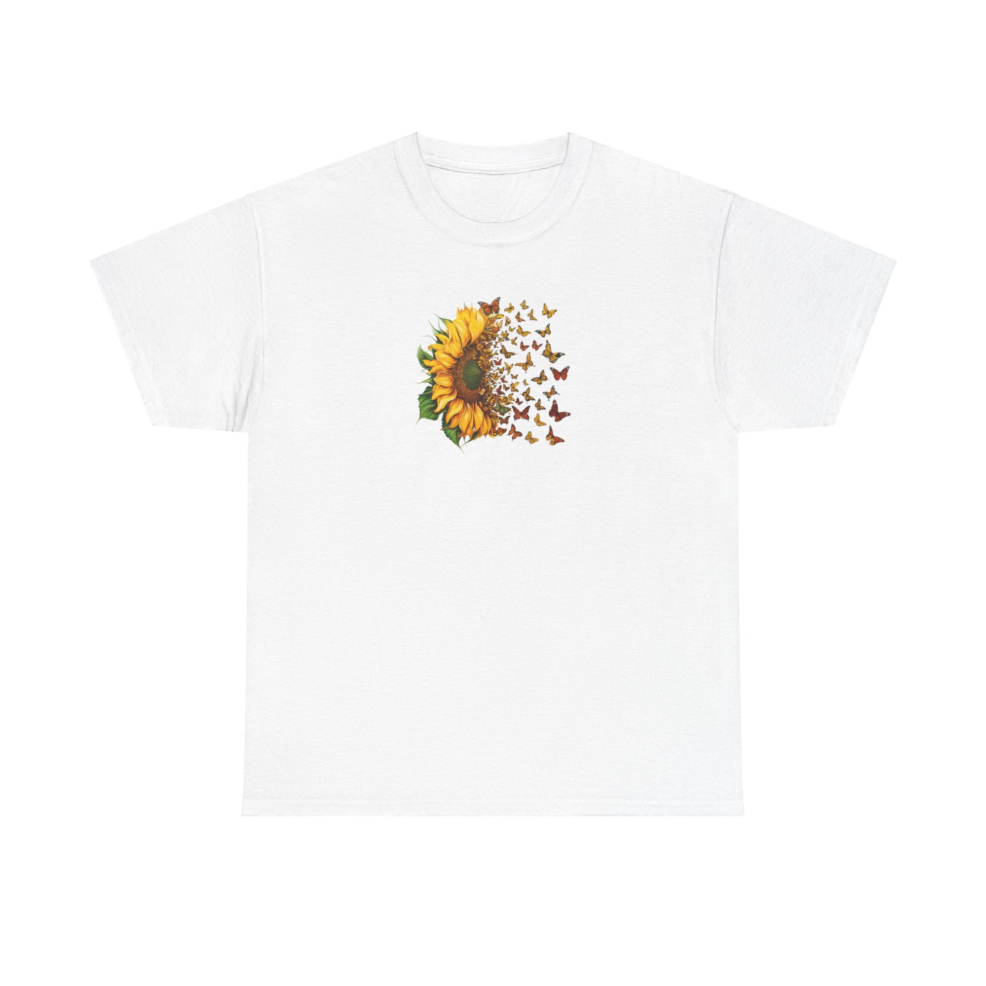 Every inch of this T-Shirt is meticulously designed to capture the essence of a sun-drenched meadow, where the bold sunflower stands proud before releasing its essence into the breeze as butterflies. This design reflects the cycle of growth and rebirth, a powerful narrative that speaks to the heart of every nature lover. The T-Shirt serves as a visual poem, its narrative woven with the threads of an idyllic summer day, where the air is alive with the whisper of wings.