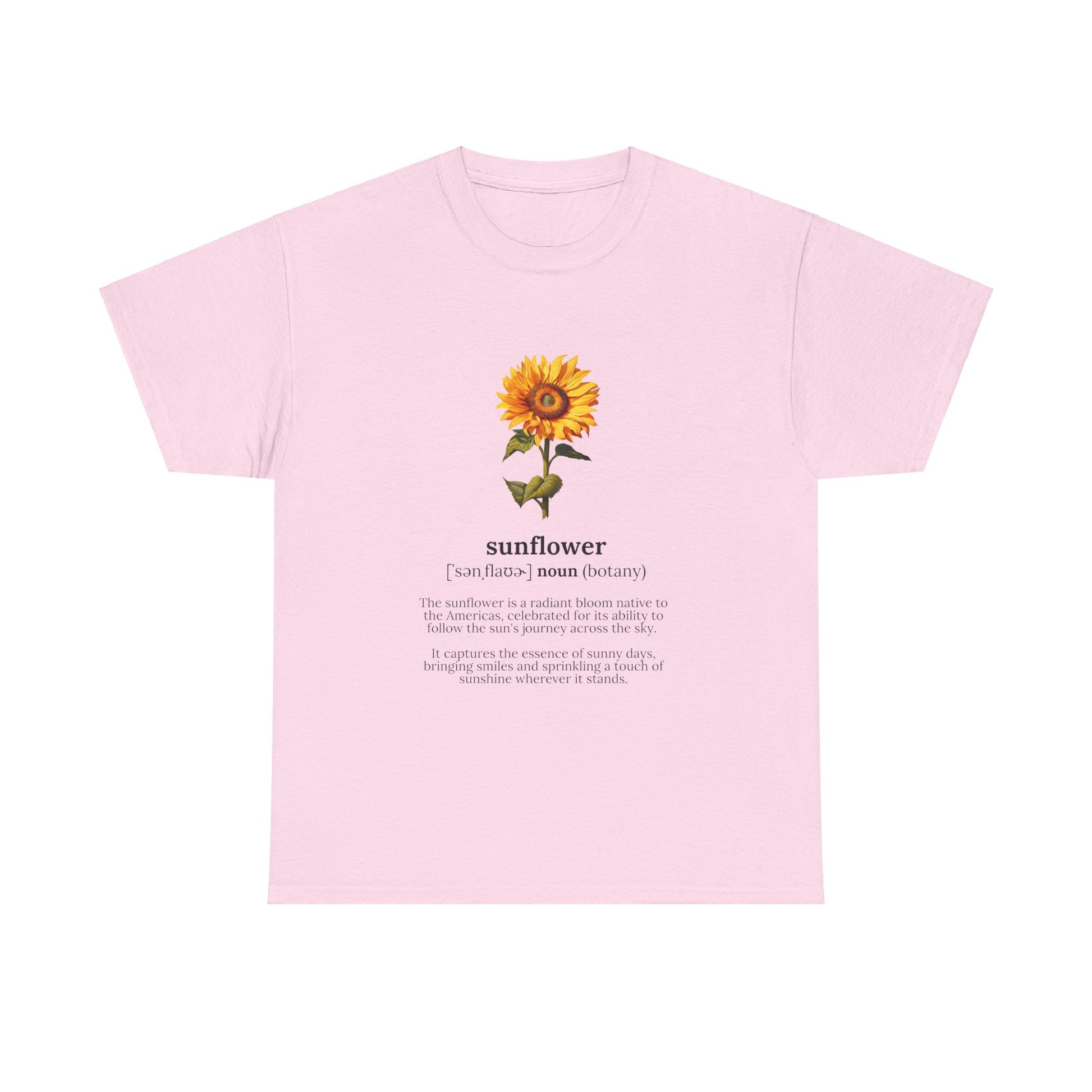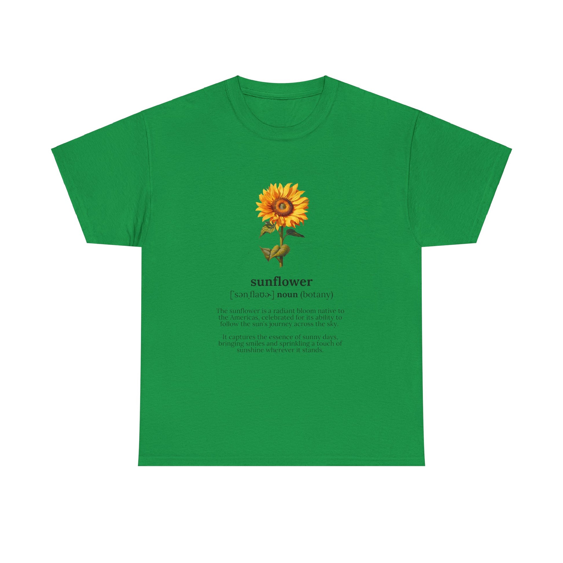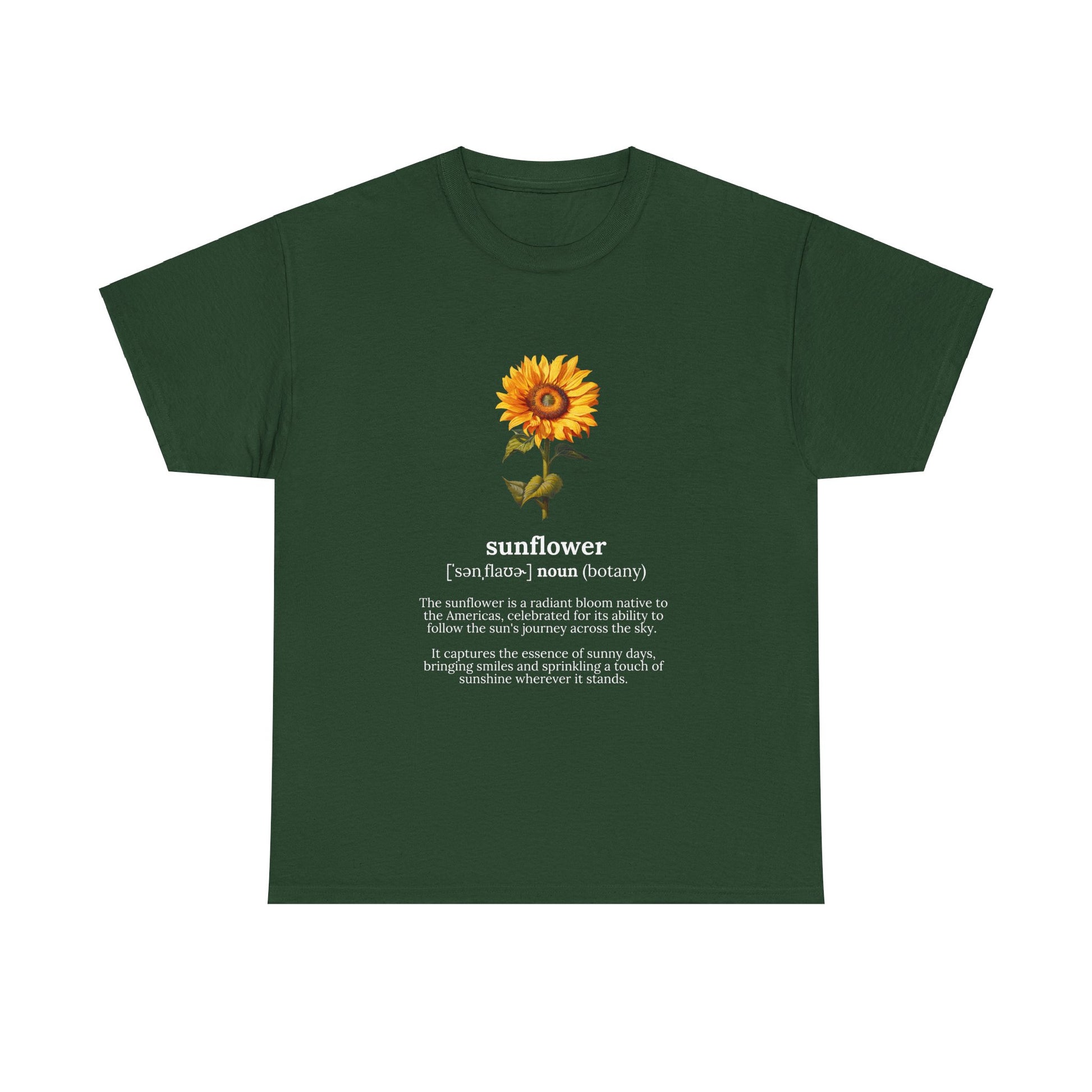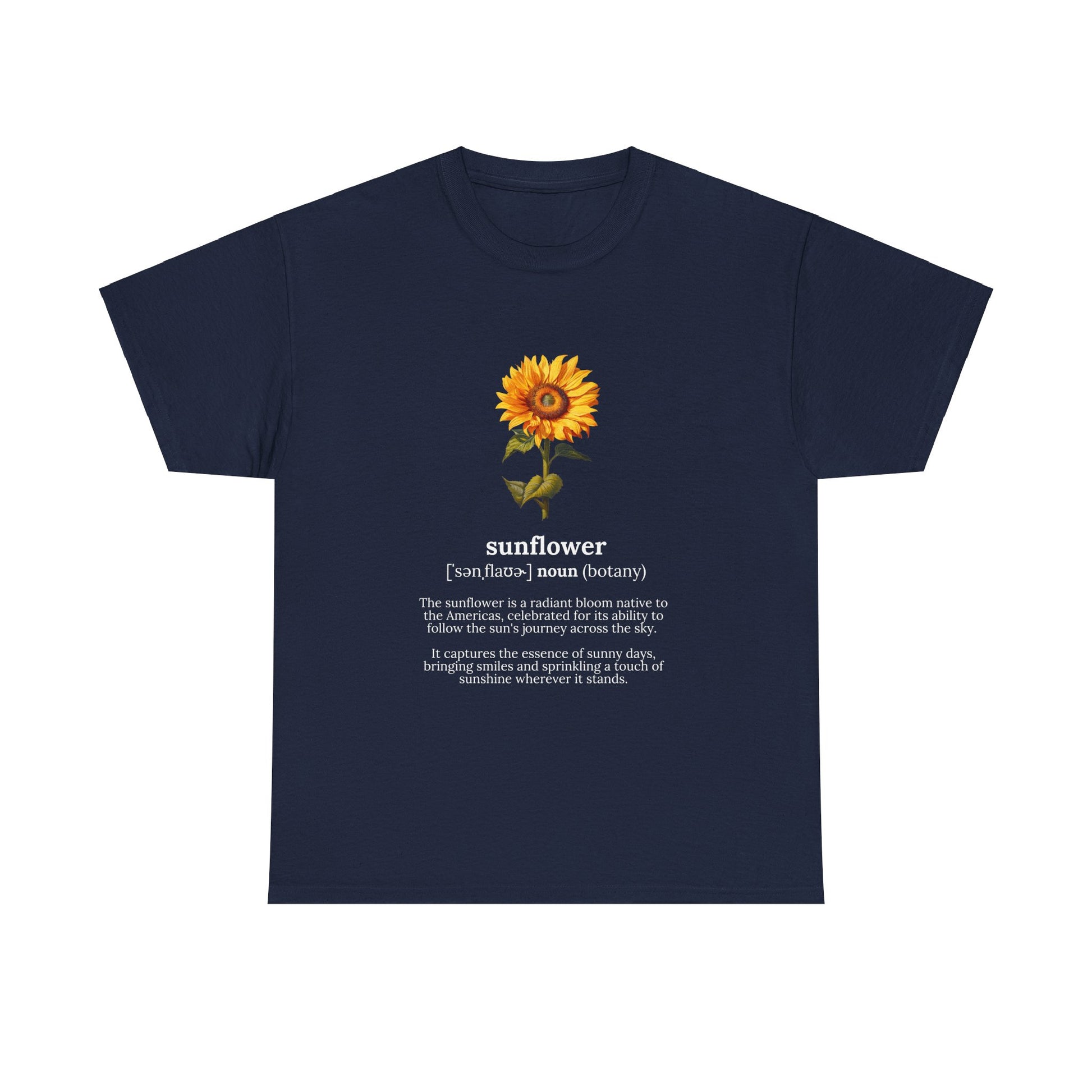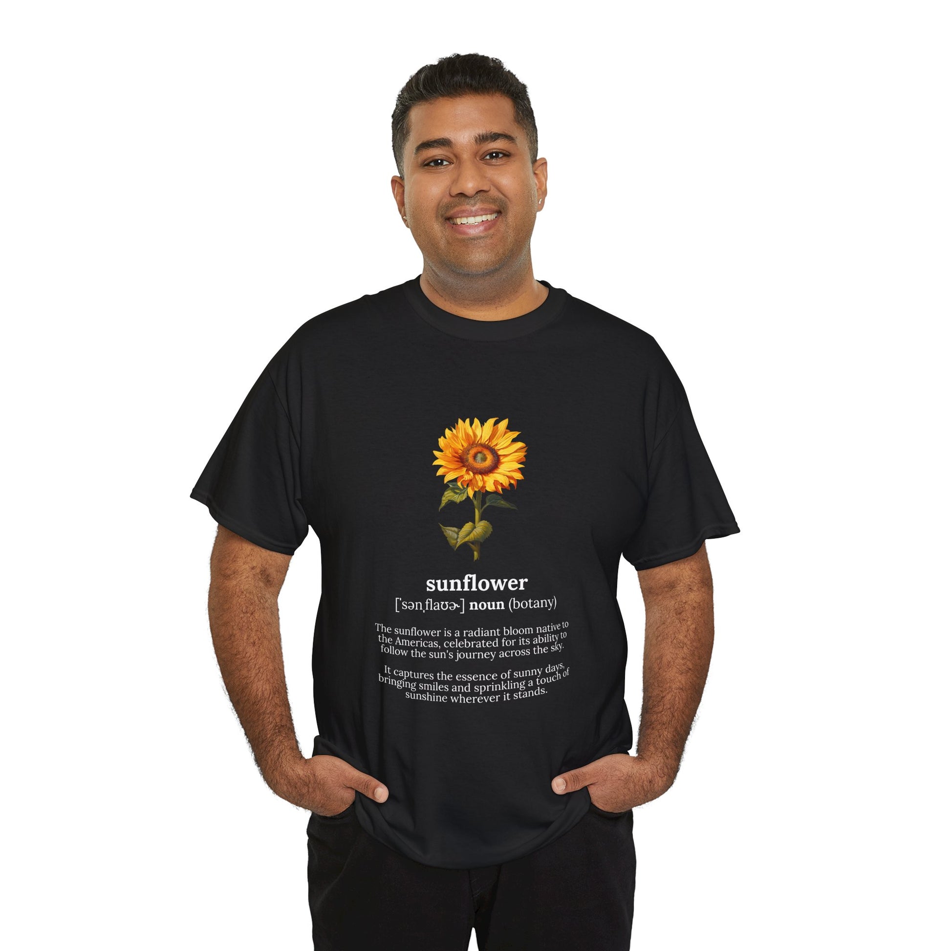 Sunflowers are no ordinary blossoms. They are nature's very own sun-chasers, always seeking the light and dancing in its glow. This T-Shirt celebrates that unique spirit. Through the humor-infused definition, we've captured the sunflower's essence, its sunny disposition, and its unwavering optimism. Every time you wear this T-Shirt, you're not just donning a piece of fabric; you're embracing the joy and positivity that sunflowers represent.