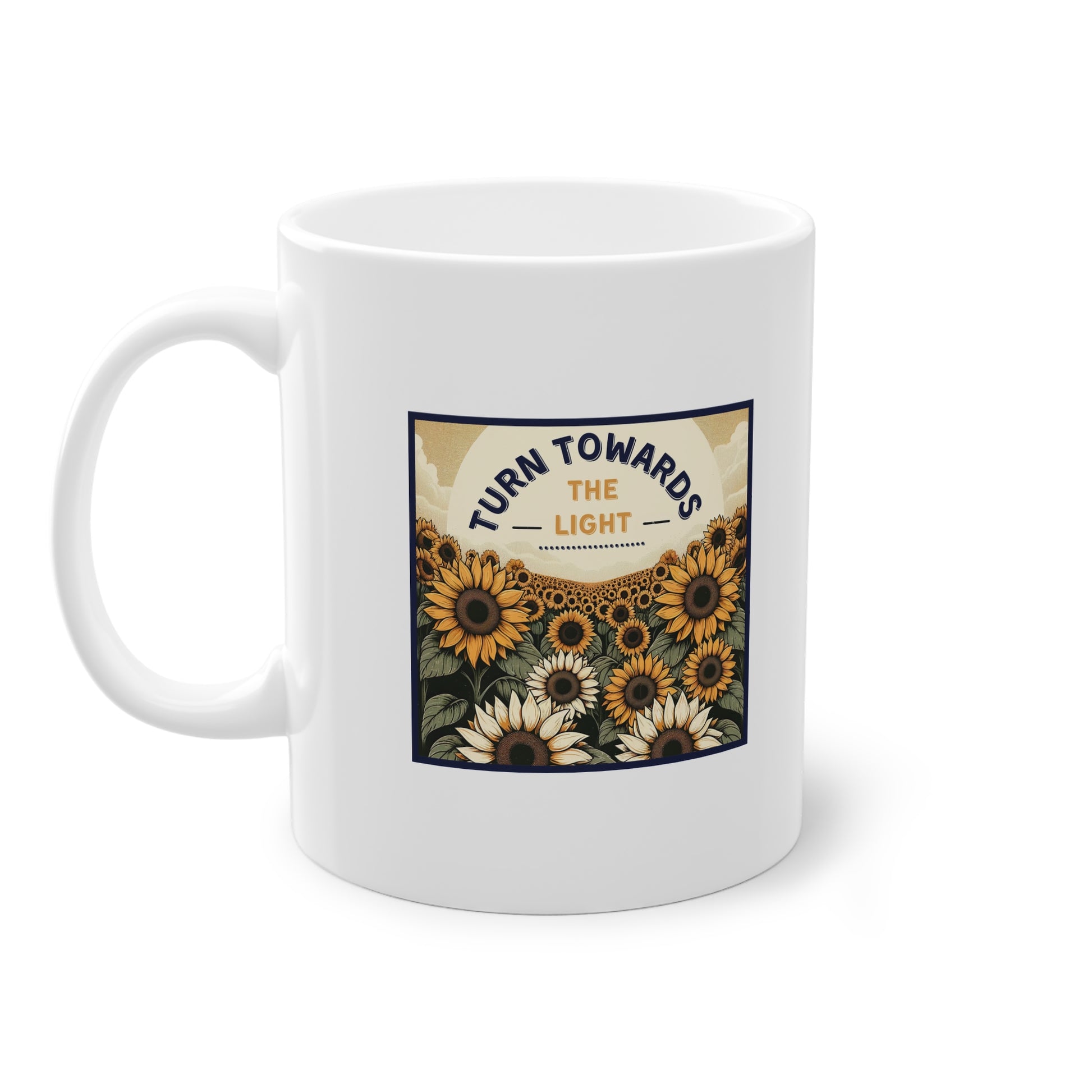 Imagine the warmth of the first morning light, sunflowers stretching tall, turning their faces to the sun. That's the essence we've captured in our "Turn Towards the Light" coffee Cup. A blend of vintage aesthetic and sunflower splendor, it's a beacon of optimism with every sip.